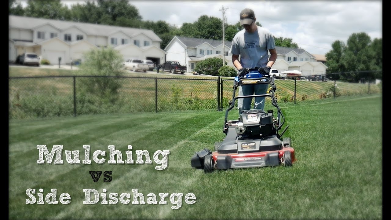 Subsequently, question is, Which is better mulching or side discharge? Both side-discharge and mulching mowers leave grass blades behind. However, a mulching blade chops up clippings into finer pieces so they decompose faster and don’t clump as quickly. Using a side-discharge mower you may need to do your own mulching by running over your grass piles multiple times.