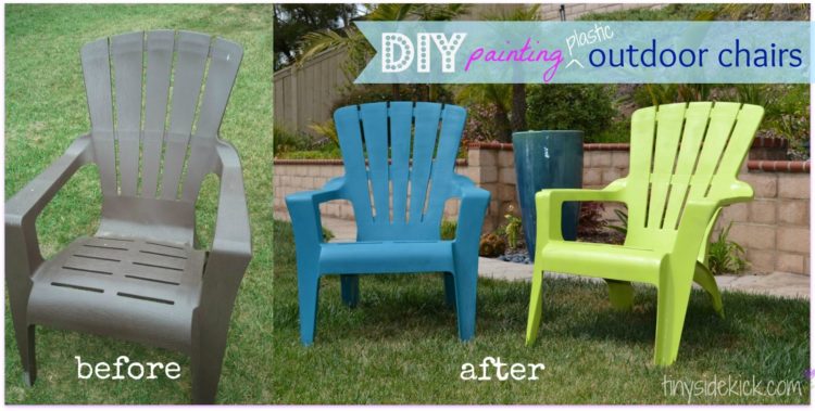 Rust Paint & Primer in One or EasyCare® Premium Décor Spray Enamel (satin finish is ideal for plastic). Hold the can at least 12″ away and spray in a sweeping motion. Let the paint dry before applying another coat to the plastic chair.