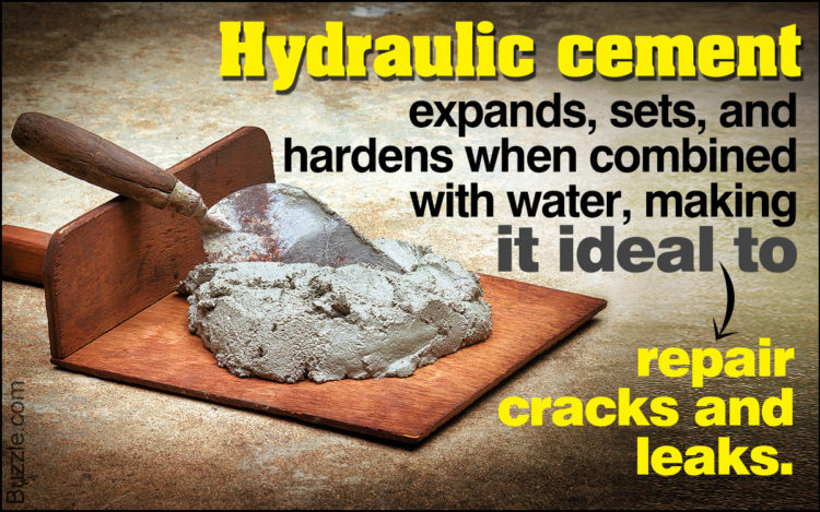First, this type of cement will cure under water, which means that you don’t have to dry out the leak before stopping it. Second, is that hydraulic cement expands as it cures, so it tightens up cracks and seals the gaps around pipes.